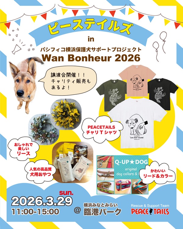 ※3/29(日)のワンボナ譲渡会で少量ですが販売もあります。ご試着もできますので是非ワンボナ譲渡会ピーステイルズブースにお立ち寄りください。